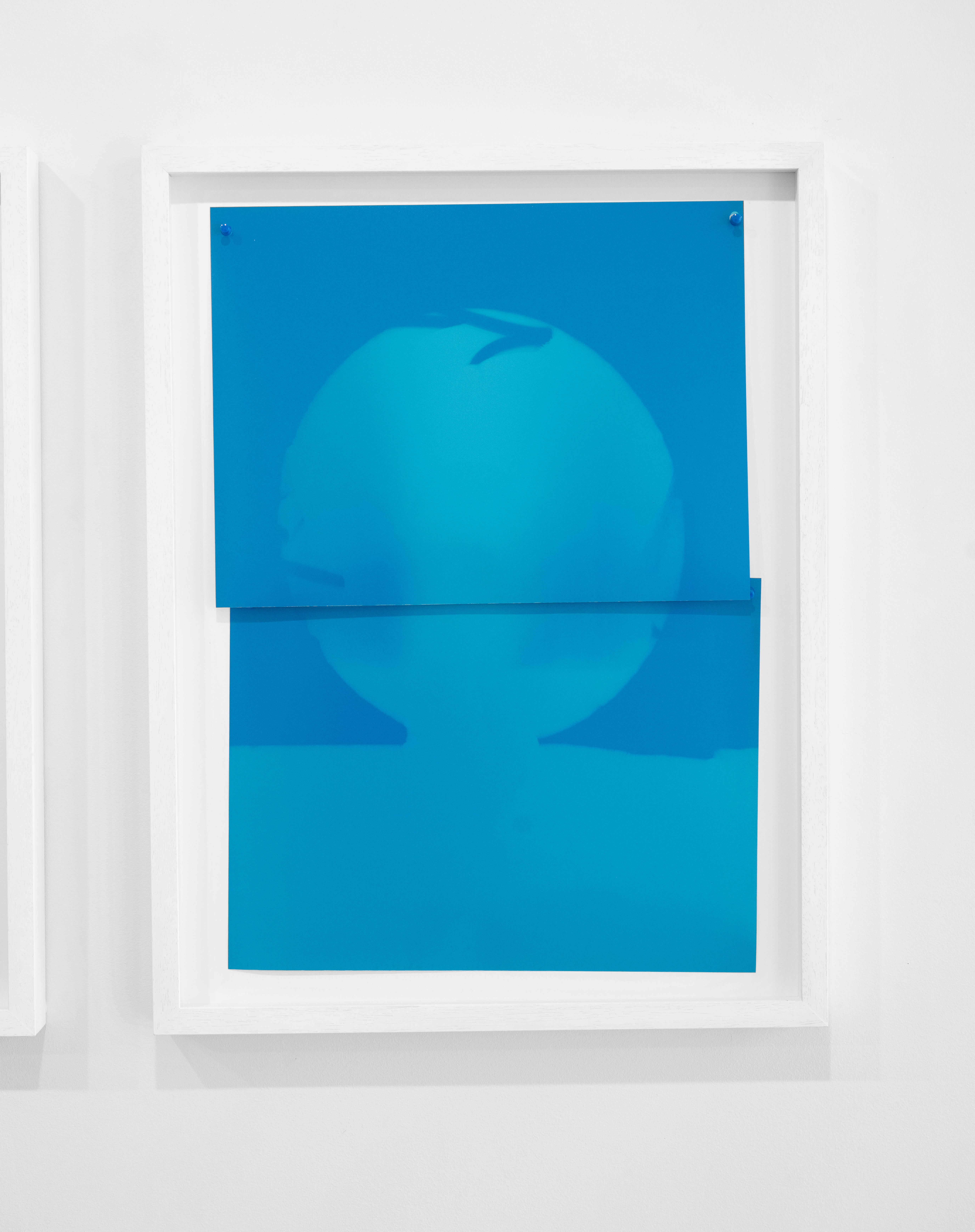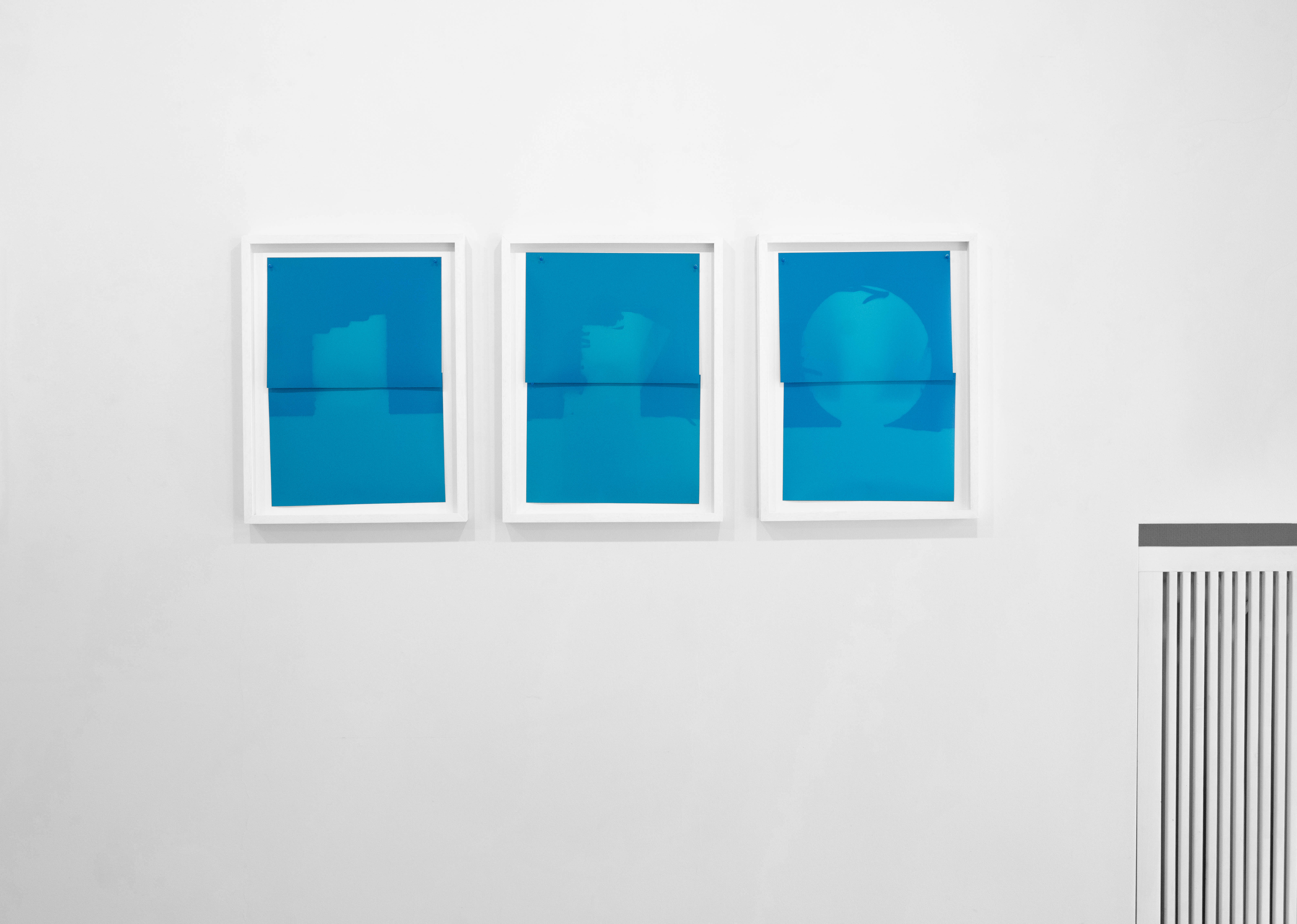 Developing a spatially exploded photogram, the architecture of the photographic studio is considered as a camera. Components of photographic production are re-situated from their familiar locations, with the photographer and subject (usually outside) joining latent image, apparatus, and recording medium inside the black box. As a laser pointer is directed over an object positioned on a tabletop, multiple instances of shadowing accumulate on composited sheets of analogue colour photographic paper, drawing out its form. In this horizontal photogram light is targeted across the space, like the laser of the shooting range, rather than the geometric diffusion of the darkroom enlarger.